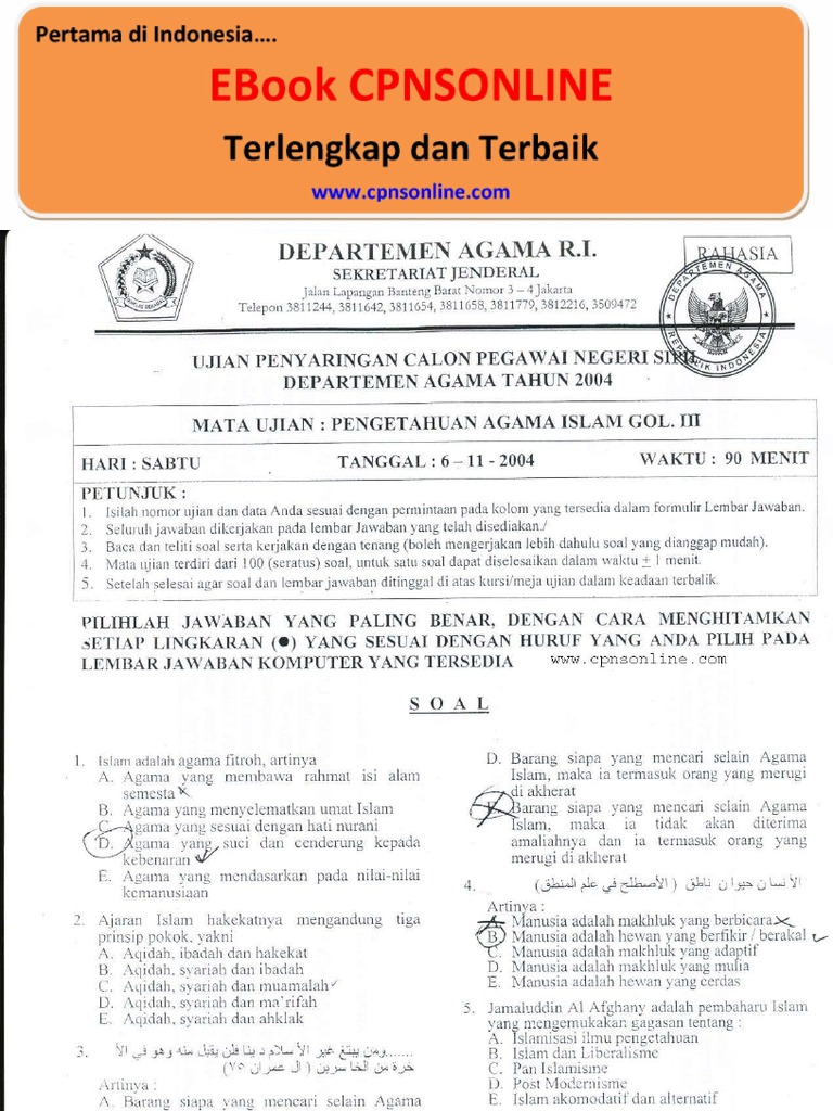 Contoh Soal Tes Cpns Kemenag. Terima kasih telah berkunjung, semoga dapat bermanfaat untuk kita semua. Saat Anda mengikuti ujian seleksi rekrutmen CPNS KKP pada tahap Seleksi Kompetensi Bidang, pelamar akan mengerjakan soal ujian SKB yang berhubungan dengan formasi yang dilamarnya.